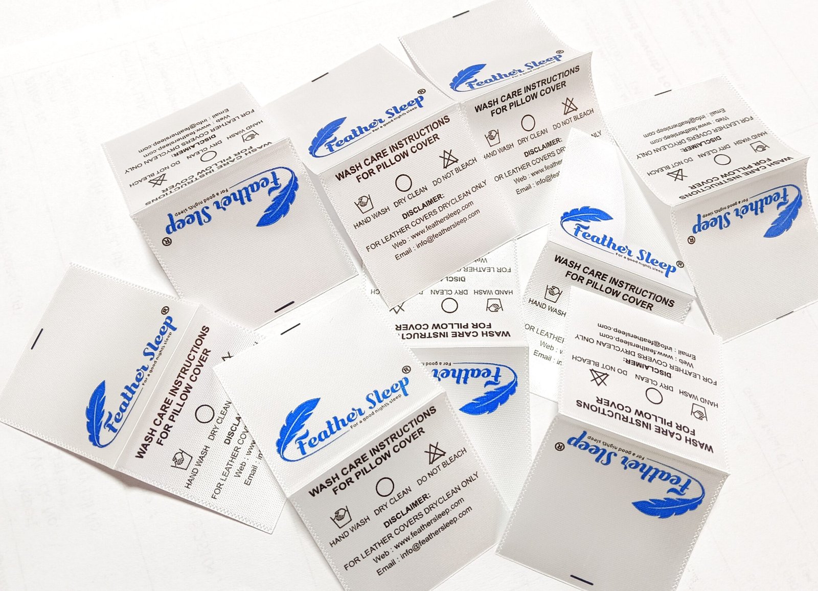 This center fold label includes the brand name along with clearly mentioned wash instructions. The fold in the middle gives the label a proper and even shape, while the surface remains smooth and comfortable. The text stays easy to read and the label keeps a neat, finished look over time.