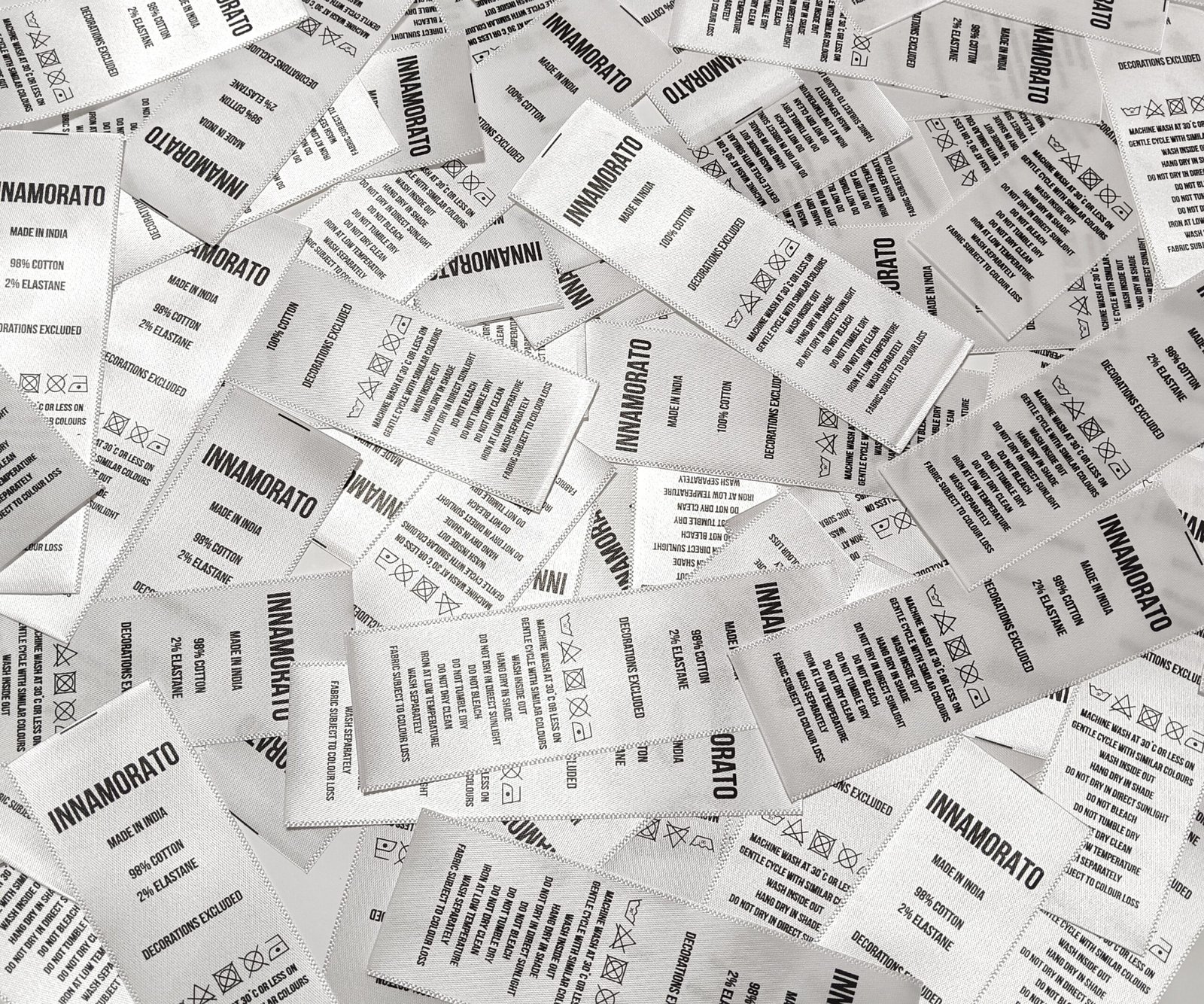 This heat cut label carries the brand name and care details with a smooth, flat finish. Sealed edges keep the label tidy, while the text remains clear and well-defined. The overall look stays simple, clean, and presentable.