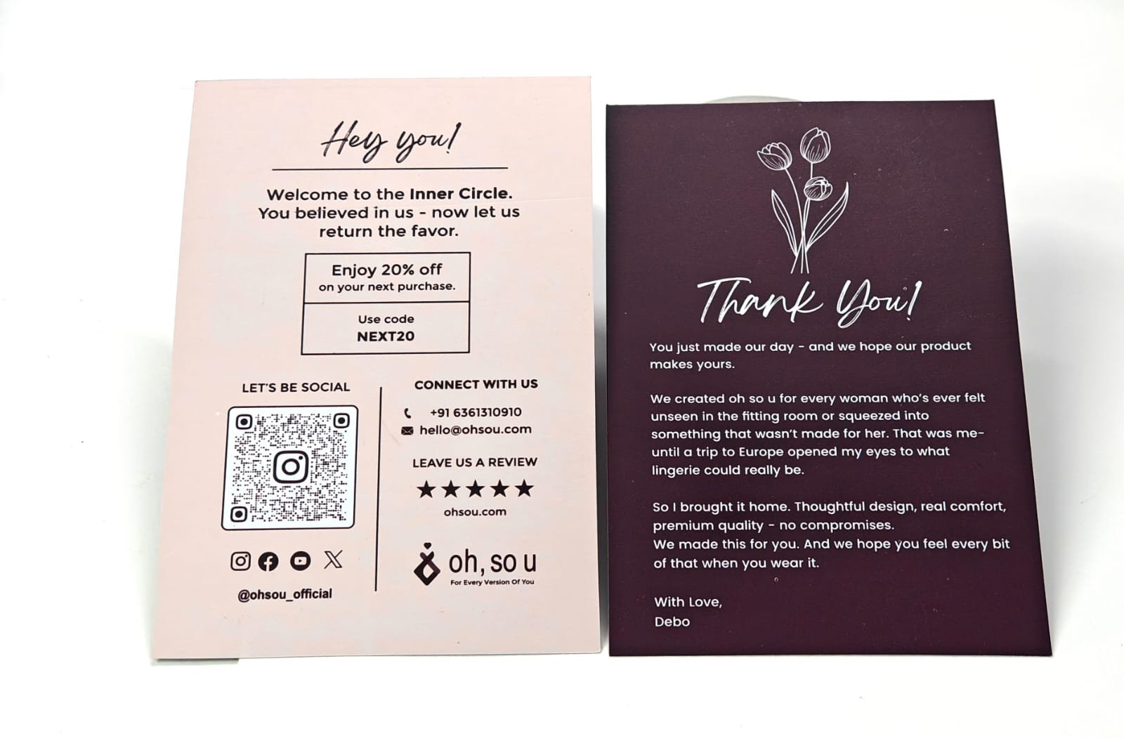 Our thank you cards are widely used for weddings, birthdays, baby showers, corporate events, business packaging, customer appreciation, and promotional purposes. Businesses often include branded thank you cards with products to strengthen customer relationships and enhance brand identity.